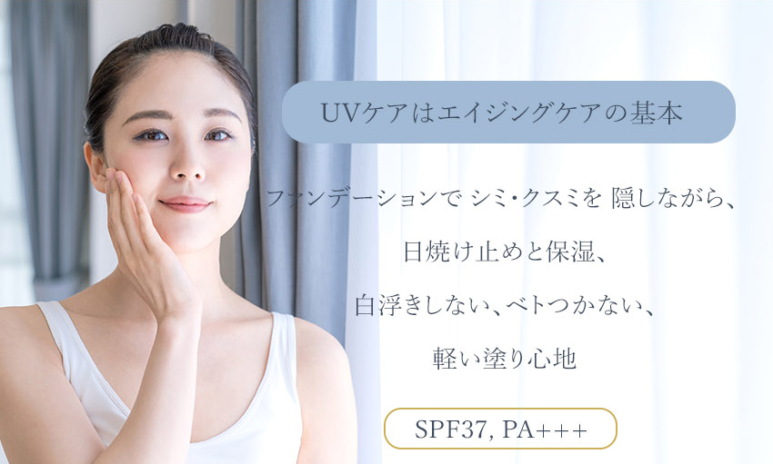 ② 少し多いと感じるくらいに顔の広い部分、続いて細かい部分にも、ムラにならないように薄くよくのばします。鼻の高い部分には重ねづけしておくと良いでしょう。首回り、デコルテ、耳にも塗っておきます。