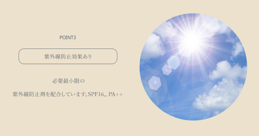 必要最小限の紫外線防止剤を配合しています。<SPF16,, PA++>